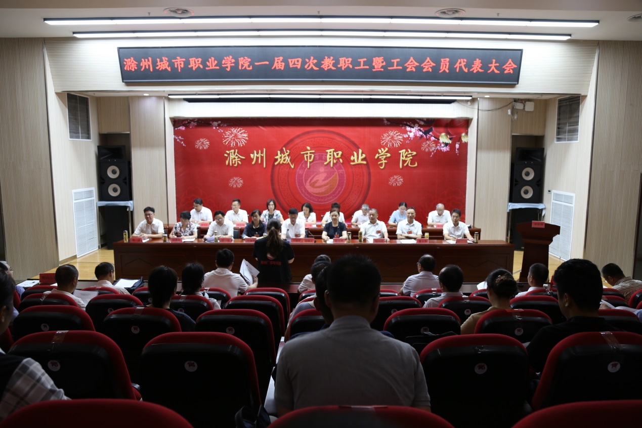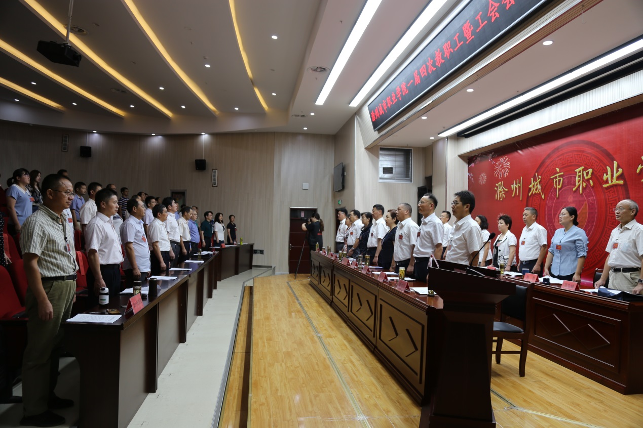 9月12日上午8时,大会第一次全体会议在雄壮的国歌声中正式拉开帷幕!米德成主持会议。张志华代表学院向大会作了题为《坚持立德树人,聚焦双高目标,奋力建设技能型高水平新城院》的工作报告。