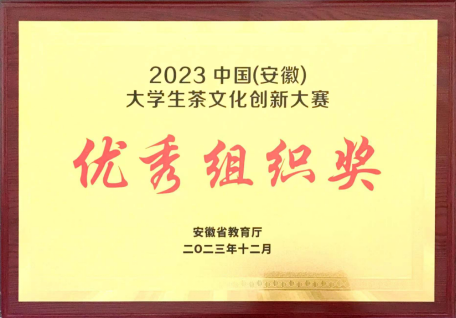 茶文化活动受到学校领导和相关部门大力支持,我校荣获2023中国安徽大学生茶文化创新大赛“优秀组织奖”。