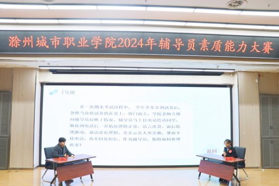 “案例研讨”环节,辅导员通过AB角色互动形式,围绕学业辅导、职业规划和学生资助等主题展开讨论,7组选手既是竞争对手也是辩论伙伴,展现了扎实的理论功底和解决问题的能力。他们深入剖析问题本质,提出具体实施方案,体现了专业的育人理念。