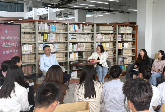 4月29日下午,一场以“青春为中国式现代化挺膺担当”为主题的青年座谈会在图书馆阅览室开展,校党委书记王燕永出席座谈会并与师生们亲切交谈,校团委、马克思主义学院青年教师代表、辅导员代表、青年学生代表参加座谈会。座谈会以纪念五四运动106周年为契机,共话青年使命与担当,现场气氛热烈。