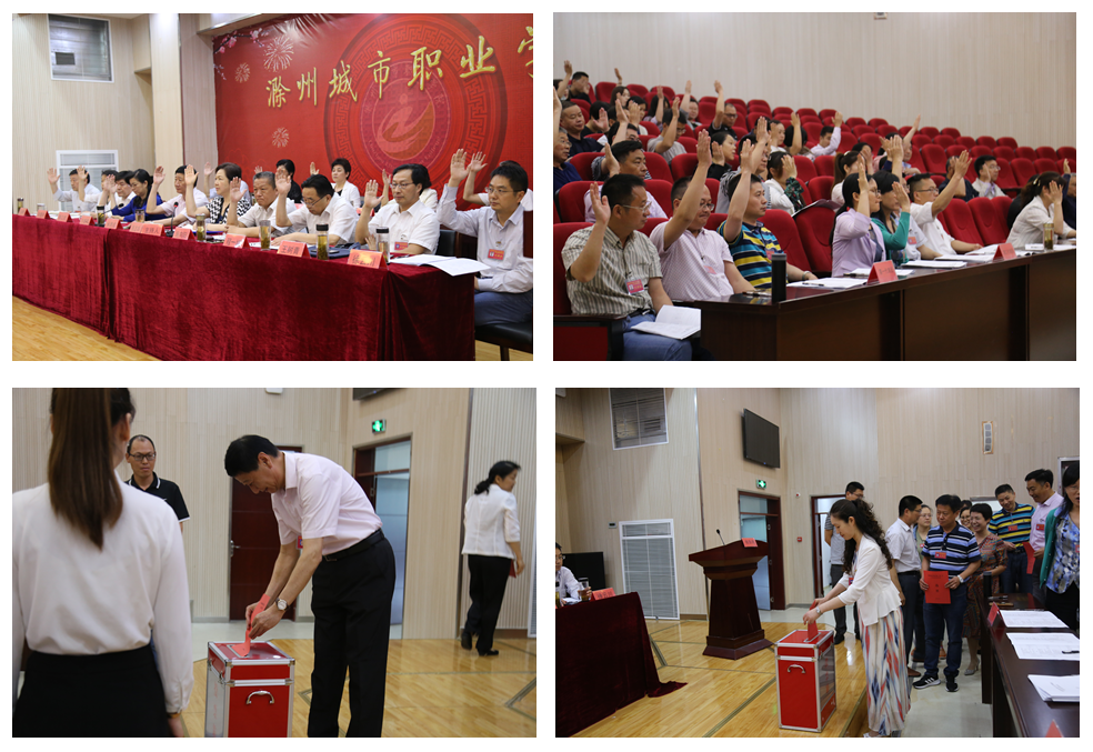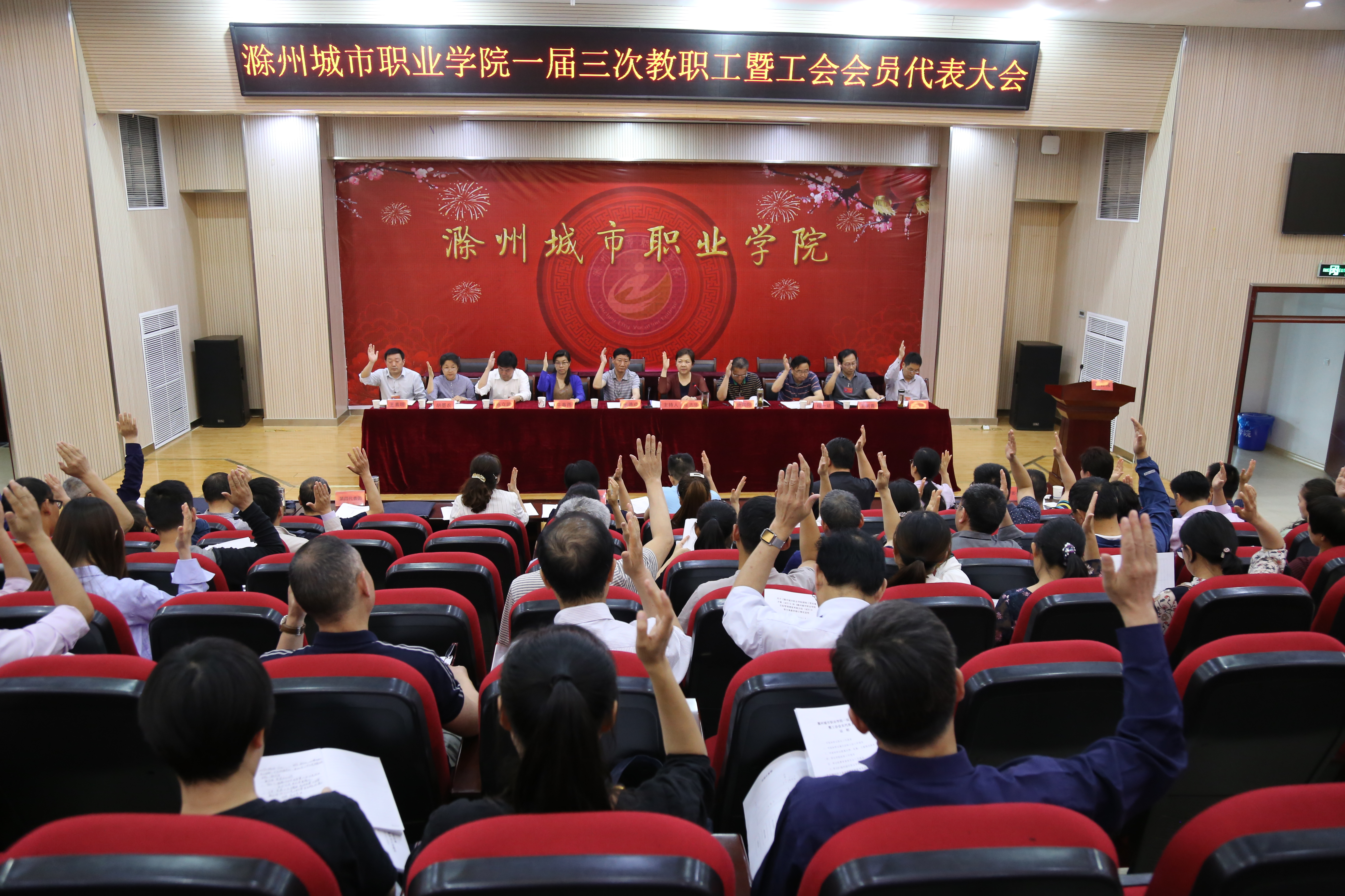 上午11时,大会举行第二次全体会议。表决通过了工会委员会委员候选人名单,表决通过监票人、总监票人名单,选举产生工会委员会委员。表决通过了《滁州城市职业学院院长工作报告的决议》《滁州城市职业学院工会工作报告的决议》,表决通过了《滁州城市职业学院绩效工资实施方案(试行)》《滁州城市职业学院目标管理绩效考核办法(试行)》修订的部分条款。