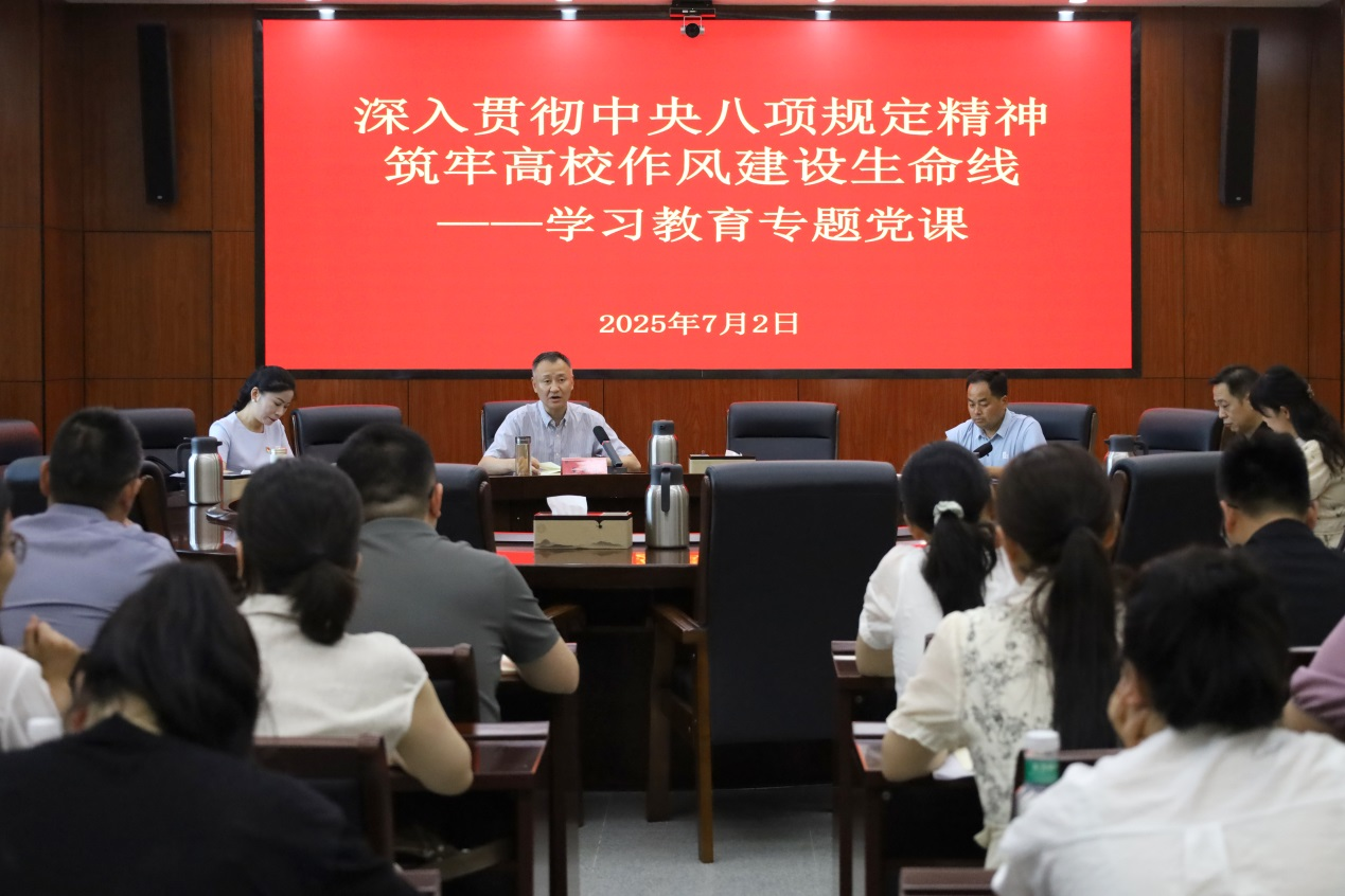 校党委书记王燕永以“深入贯彻中央八项规定精神,筑牢高校作风建设生命线”为题,为教育学院党总支和机关第一党支部60余名党员讲授专题党课。党课紧密结合当前党风廉政建设和反腐败斗争形势,通过剖析教育系统典型案例,深入浅出地阐释了中央八项规定精神的深刻内涵和实践要求。王燕永强调,“作风建设永远在路上”,全校党员干部要始终把落实中央八项规定精神作为政治必修课。