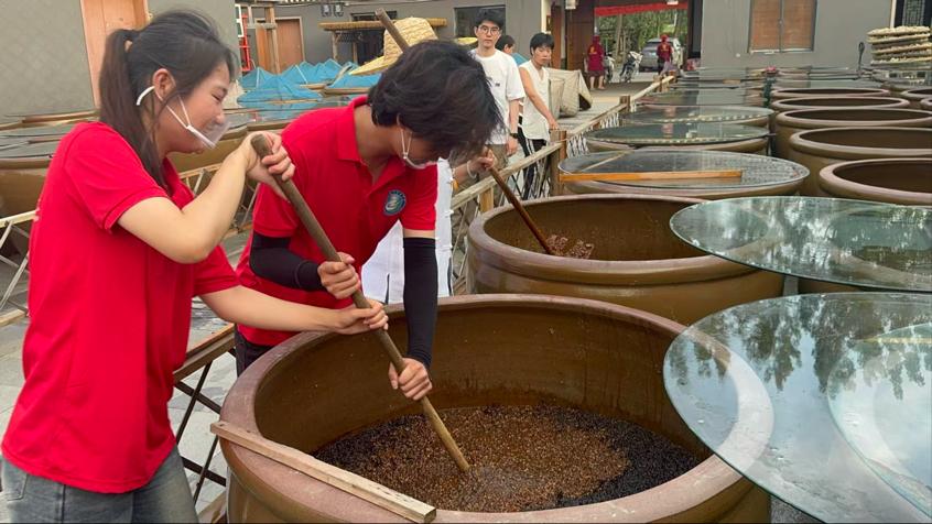 非遗美食与技艺,解锁传统味道与匠心。管理与信息学院“红踔堂”实践小分队开启非遗美食探访之旅,于7月6日走进全椒县两家非遗相关企业,深挖地方特色文化内涵。在全椒县礼庚管坝牛肉有限公司,队员们沉浸式学习“管坝牛肉”这一传统清真名菜的制作技艺——从精选优质牛肉,到复杂的腌制入味,再到慢火卤制的把控,非遗传承人对每道工序的细致讲解,让队员们深刻体会到传统美食背后“慢工出细活”的匠心。而在全椒县魏美玲食品有限公司,队员们则聚焦传统酿造工艺,系统了解徽酱从原料甄选(当地饱满大豆、小麦)到发酵成熟的全流程,见证阳光与匠心如何共同孕育出“色泽红亮、酱香浓郁”的徽酱,进一步认识到非遗美食对地方饮食文化的承载意义。