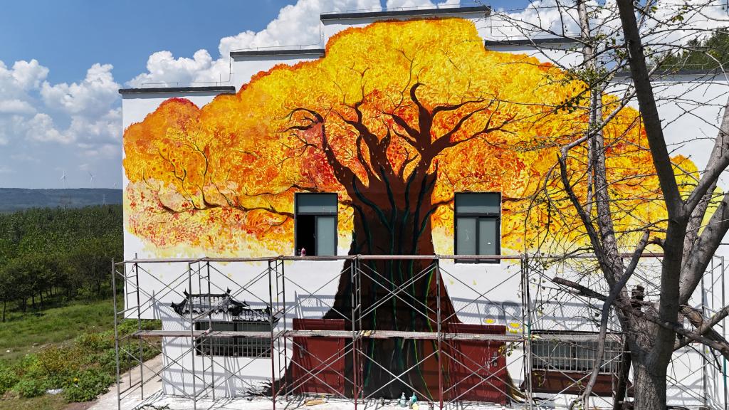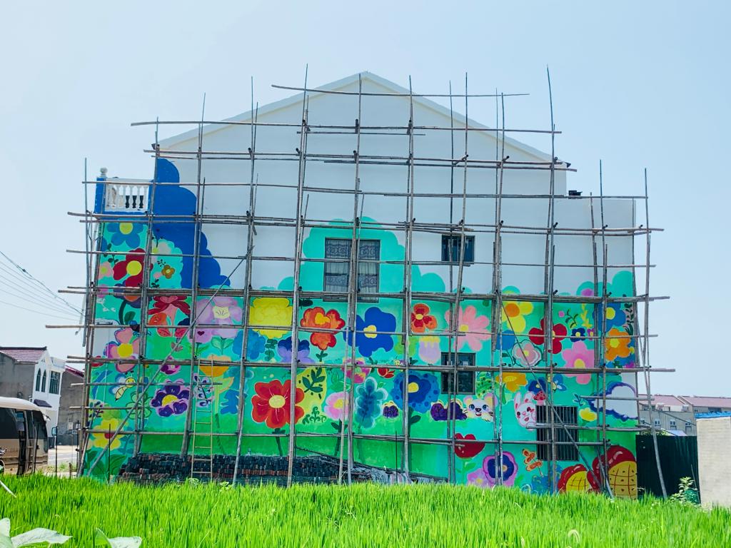 实践期间,队员们面临着高温酷暑和高空作业的双重考验。尽管烈日当头、汗流浃背,但他们热情不减,分工协作,调色、勾勒、填充,一丝不苟。脚手架上是他们忙碌的身影,墙壁前是他们专注的神情。他们以极高的热情和专业精神,克服困难,最终高质量地完成了所有预定墙绘任务,将一面面旧墙变身成为一幅幅生动鲜活、富有教育意义和地方特色的艺术画作。