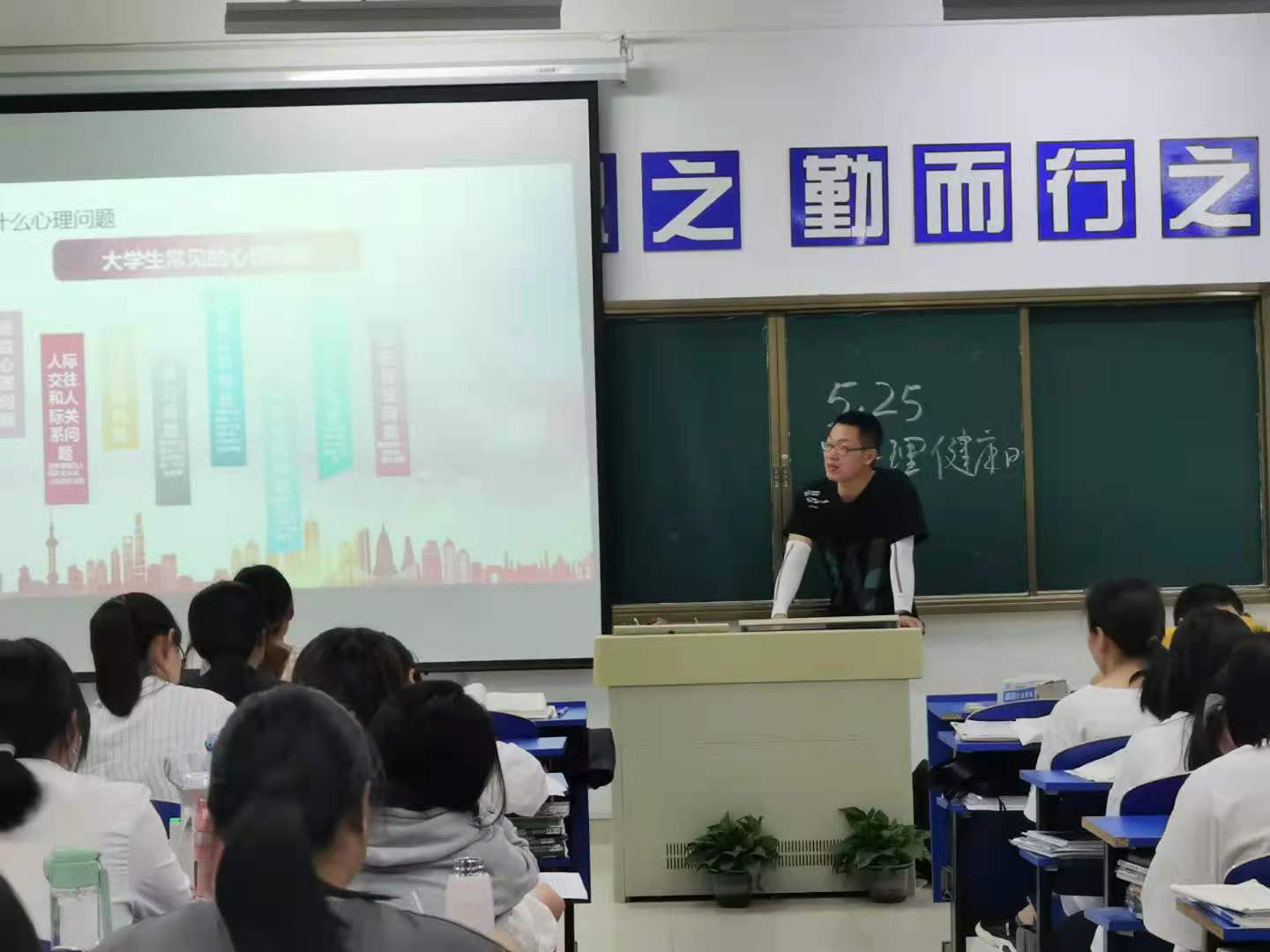 心理健康日主题班会活动。各班根据主题自行设计活动方案并且结合各班实际情况开展活动,本次班会形式多样,各班通过PPT解说、播放视频、组织游戏等形式展开,班会内容涵盖学生常见心理问题、心理健康判断标准、心理问题解决方法、人生价值取向导航等多个方面。各班学生积极投入,热情参与,班级内开展辩论、同学讨论。