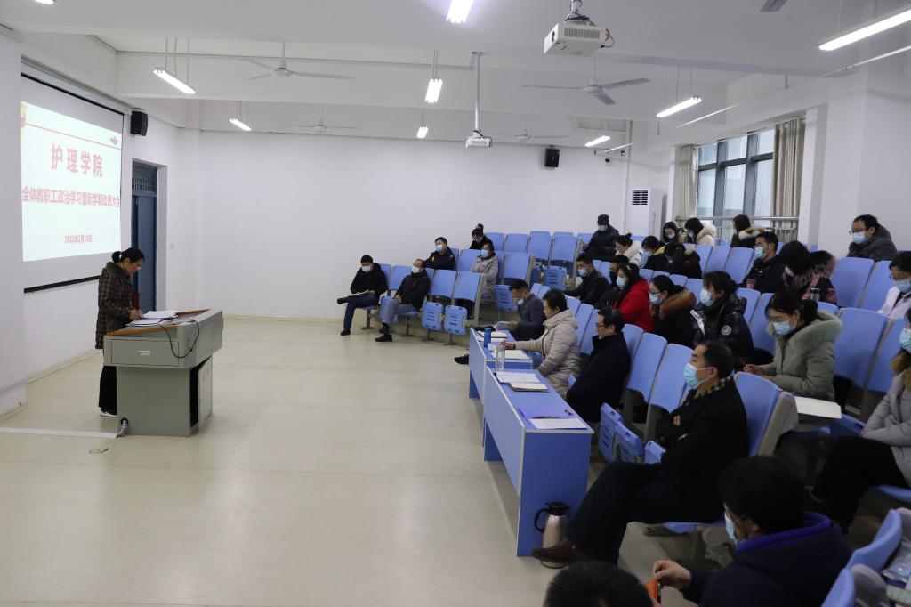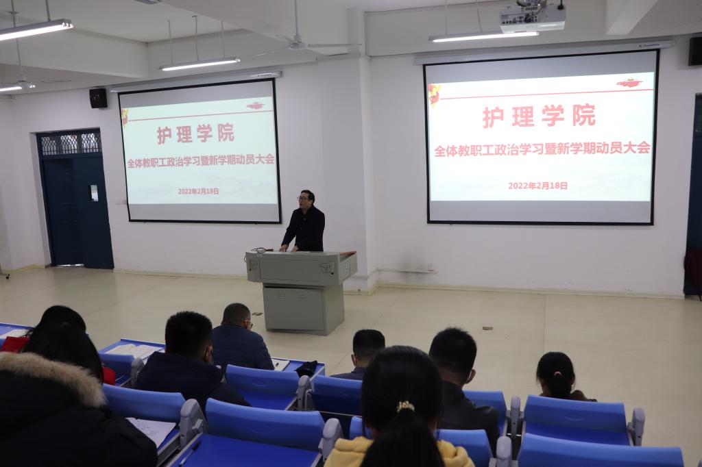 2月18日,护理学院新学期教职工大会在B3-110召开。全体教职工齐聚一堂,共谋新学期“立德树人”新目标、新方向、新事业。校党委书记张志华出席大会并讲话,护理学院党政领导、全体教职工参会。
