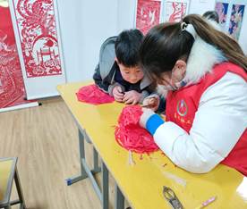 比如,来自20康复高专1班的徐心怡同学,这个寒假主动报名参加了滁州市“三社联动”试点项目——“四点半”爱心课堂志愿活动,成功当了一次“孩子王”。来到“四点半课堂”,教室宽敞明亮,各类图书齐全,家长把孩子送到这里,既有作业辅导,也有特色课程。作为志愿者的一员,徐心怡的第一节课程是寒假作业辅导。也许是第一次见面,小朋友们表现得有些腼腆,只是埋着小头写作业,有不会的问题也支支吾吾地不好意思问。徐心怡通过主动和孩子们沟通,他们之间关系逐渐亲密了起来,孩子们完成作业后会主动交给她检查,也会在下课之余围在她身边分享生活中的小趣事。“濠州剪纸”是“四点半课堂”开办的特色课程之一。 临西社区的小朋友们,在剪纸老师和志愿者们的指导下,认真地开始了剪裁、粘贴……“好开心,今天我亲手做了一面党旗,以后我也要努力成为一名共产党员”参与活动的小朋友自豪地说道。