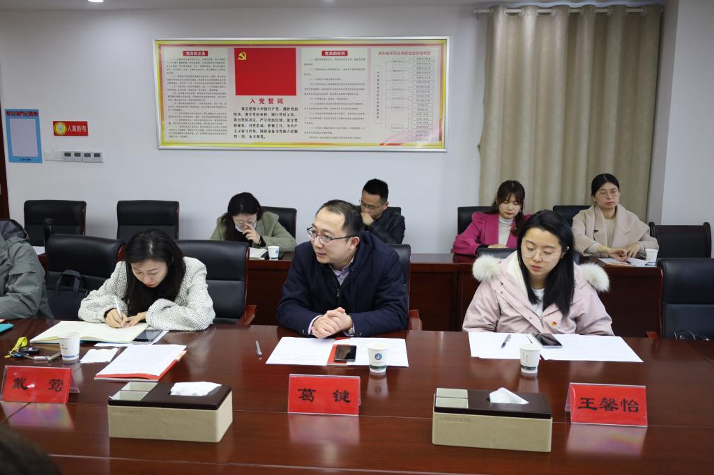 会议开始,首先由我校团委副书记陈婷婷发表述职报告。她主要围绕我校共青团的自身建设、团员青年思想道德建设、服务团员青年、服务大局等方面工作展开。她指出,2021年,我校团委积极组织广大团员青年深入学习党史四史、习近平总书记“七一讲话”精神、党的十九届六中全会精神,全面加强团员青年理想信念教育;同时,深入推进组织规范化建设,落实“三会两制一课”、主题团日等组织生活制度,认真做好团支部对标定级、团员民主评议、团费收缴、推优入党等工作,切实落实全面从严治团的各项要求。此外,校团委积极打造包括“半根草”在内的多支青年志愿服务品牌,广泛组织动员我校团员青年参加各级志愿服务、“三下乡”、“返家乡”等社会实践活动,各项工作呈现了很多新特色、新亮点。最后,陈书记还就我校共青团工作存在的一些不足及改进方向进行了汇报。