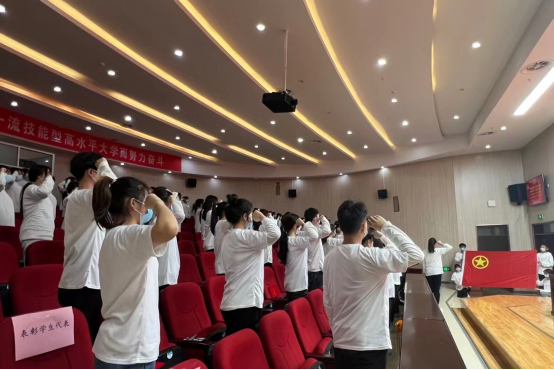 与会青年集体宣誓。新老团员面向团旗,举起右拳,用洪亮的声音许下庄重的誓言。