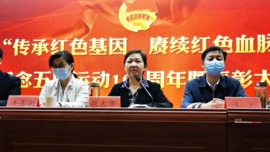 张志华发表讲话。张志华首先代表学校党委向受到表彰的集体和个人表示热烈的祝贺,向致力于共青团事业的同志们表示衷心的感谢,并对各级团组织和广大团员青年提出了殷切希望。她在讲话中将五四运动以来的各个时期下,党领导的青年运动史作简要介绍,使与会青年深刻感悟到共青团在党的领导下团结带领一代代青年跟党奋斗的光辉历程。张志华强调,面对新时代新要求,我校广大青年学子要牢记新使命,磨炼新本领,奋发新作为,展现新形象,争做有志、有才、有为、有德的好青年。