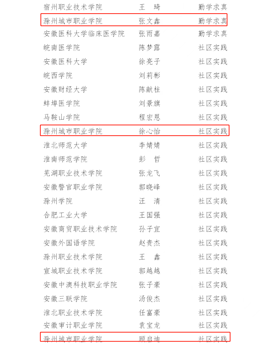 安徽拟推荐2021年度“中国大学生自强之星”奖学金候选人名单: