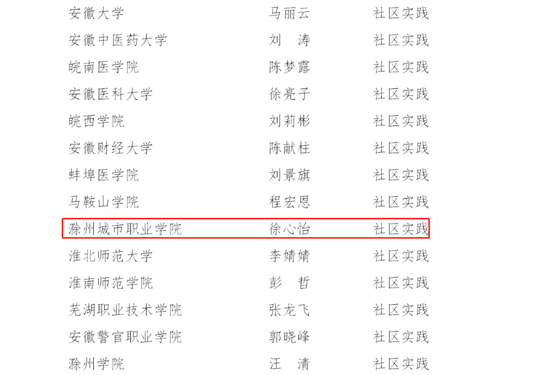根据《2021年度“安徽省大学生自强之星”奖学金推报评选工作指引》,按照爱国修德、勤学求真、创新创业、社区实践、奋斗力行5个类别,经组委会组织专家评审,共计确定100名同学(含全日制本、专科生和研究生)为“安徽省大学生自强之星”获得者,10位同学为“安徽省大学生自强之星标兵”获得者,并择优推荐70名同学为“中国大学生自强之星”奖学金候选人,我校学子张文鑫、徐心怡、顾启迪3名同学荣获“安徽省大学生自强之星”,徐心怡同学被推荐为“中国大学生自强之星”奖学金候选人。