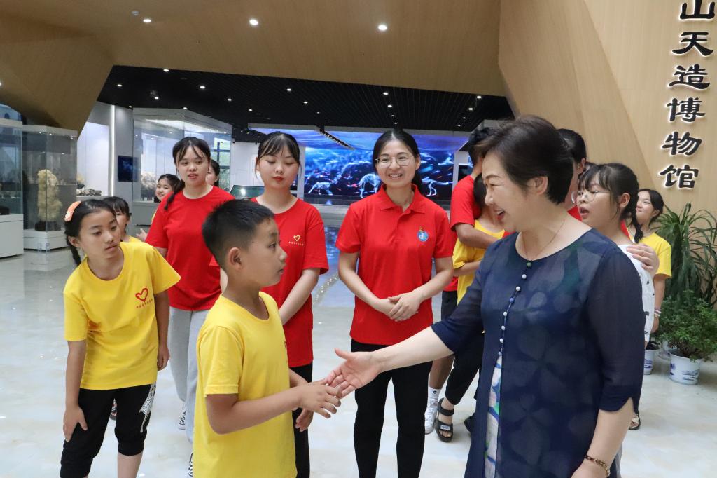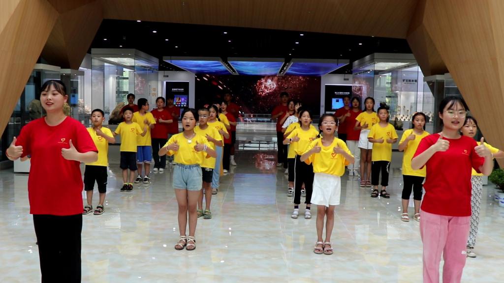 张志华一行来到天造博物馆。在博物馆内,小学生们和志愿者一起快闪表演了舞蹈《我和我的祖国》,他们边唱边做手语,学生们用甜美的歌声,表达对祖国深深地热爱。