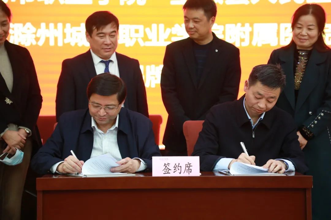 最后,汪上和医院院长李飞签署合作协议,并共同为“滁州城市职业学院附属医院”揭牌。