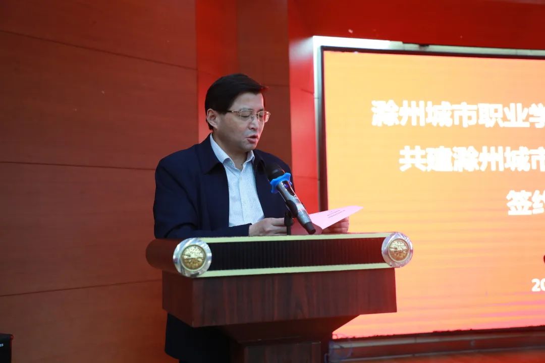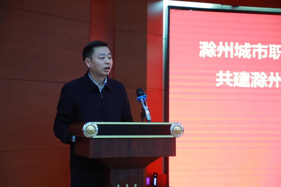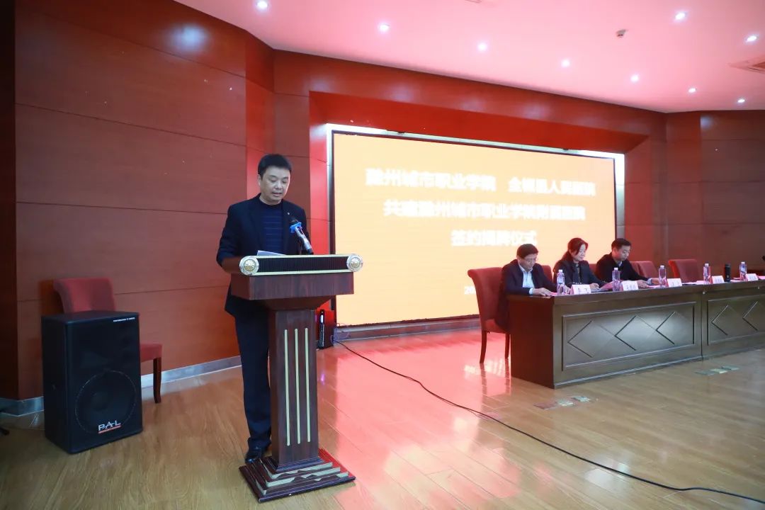 汪上代表滁州城市职业学院党委、行政向莅临签约揭牌仪式的各位领导表示热烈的欢迎,向关心支持学校和医院发展建设的全椒县委、县政府以及社会各界表示衷心的感谢。汪上就合作提出了三点希望:一是守正创新,担当新使命,以培养医疗卫生人才为目标,医教研并举,大力加强内涵建设;二是厚植优势,加速新融合,坚持“共商、共建、共享、共赢”的合作理念,深入推进资源共享、优势互补,促进医教研协同发展;三是抢抓机遇,实现新发展,共建共享学科协同发展平台,拓宽医学教育、医疗服务新领域,进一步创新协同机制,打造医学新高地、培养医学新人才、形成医学新成果,为地方经济社会发展和人民生命健康贡献力量。