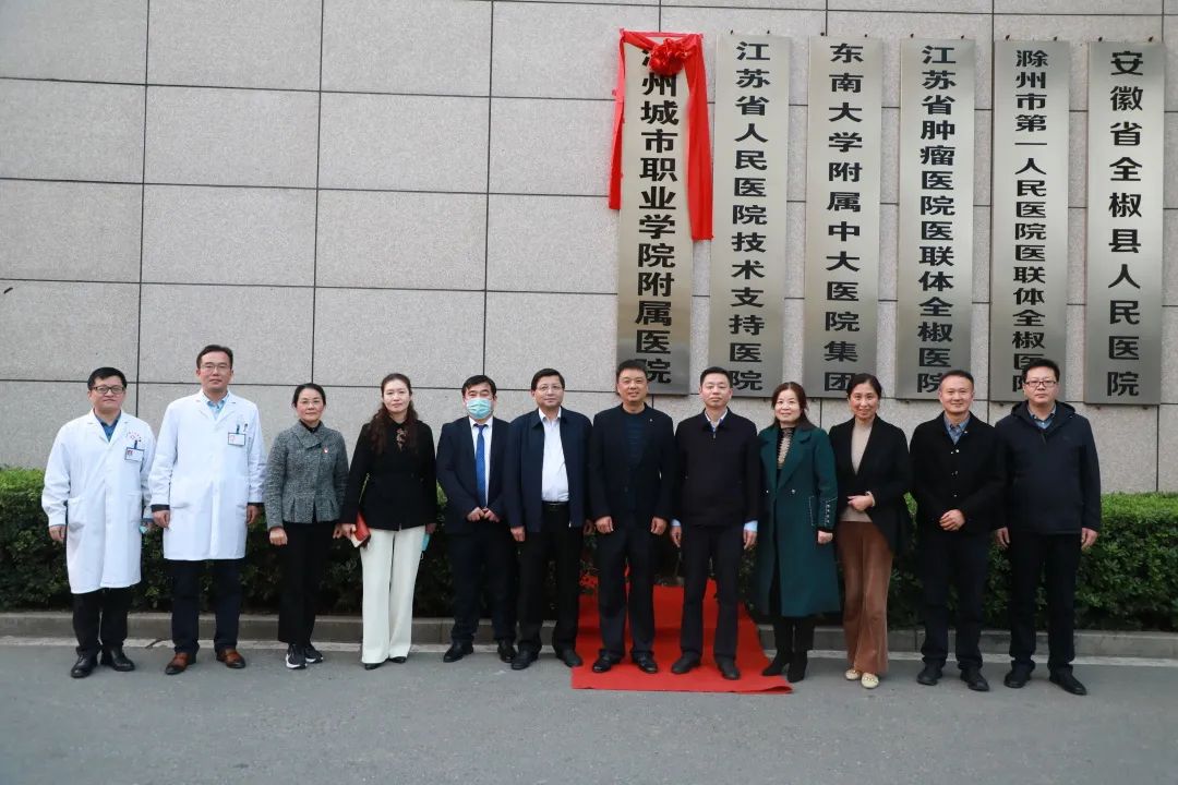 11月24日,滁州城市职业学院附属医院签约揭牌仪式在全椒县人民医院举行。校党委副书记、校长汪上,党委委员、副校长吴惠珍和医学院、护理学院相关负责同志出席仪式。全椒县人民政府副县长陈劲松,县卫健委党组书记、主任胡玉屏,医院院长李飞等共同出席仪式。揭牌仪式由医院党委书记周宜中主持。
