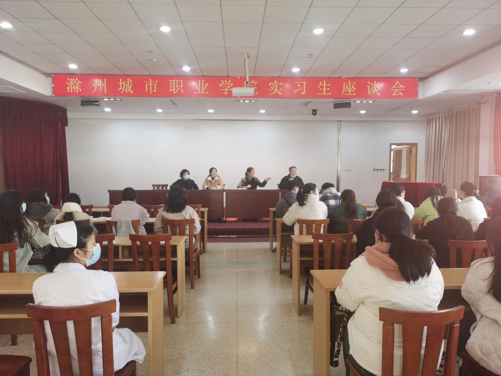 在天长市中医院实习生座谈会上,吴惠珍同实习生亲切交流,关心学生工作、生活情况,鼓励实习生多与带队教师和实习指导医生交流,认真学习、虚心求教,苦练本领、提高技能,争取早日成为合格的医护工作者。