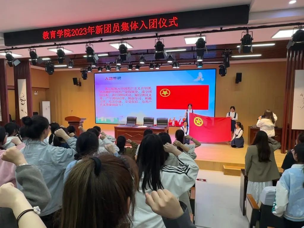 为引导广大团员青年继承和发扬“五四”精神,厚植爱党爱国情怀,切实增强共青团员的责任感、使命感、荣誉感,学校各二级学院在五四前夕纷纷举行新团员集体入团仪式。通过颁授团徽、团员证,领学《团章》,优秀团员故事分享,合唱团歌等仪式,让每位新团员感受加入中国共产主义青年团的光荣与责任。最后,在鲜艳的团旗下,全体新团员庄严宣誓:“我志愿加入中国共产主义青年团……”青春洪亮的声音,铿锵有力的誓言,彰显着新时代青年的青春热血与为团组织事业贡献力量的坚定信念。
