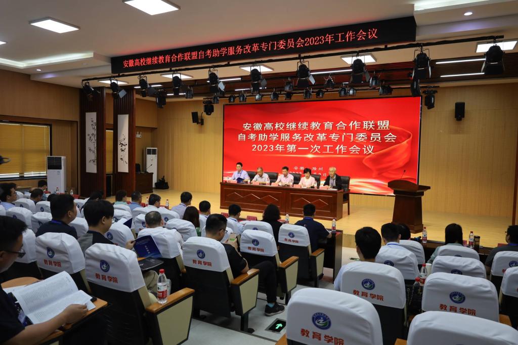 会上,合肥工业大学传达了全省自学考试工作会议精神;安徽开放大学汇报了省级重大教学改革委托项目《基于继续教育网络园区的自考助学服务改革实践与研究》阶段性进展情况。安徽师范大学、安徽财经大学、安徽工程大学等主考高校及我校、合肥信息职业技术学院等部分高职学院围绕“推进自考助学数字化转型发展,借鉴继续教育网络园区模式,探索高质量、一体化的自考助学发展新路径”主题交流了工作开展情况。