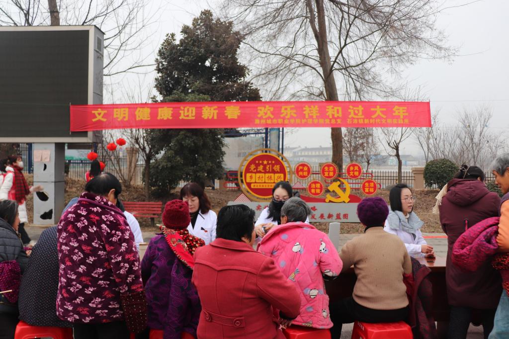 本次活动旨在关爱农村居民健康,提高健康意识,促进健康知识的传播和急救技能的普及,让当地村民在喜庆的氛围中感受中国传统文化的魅力,增强文化自信,感受节日气氛。护理学院党总支书记蔡季秋、石沛镇副镇长许庆祥、石沛镇副镇长余媛媛、护理学院党员代表、入党积极分子代表、大季村居民近300人参加活动。