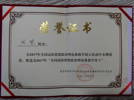 1.教师比赛撷取硕果。近年来,马院积极组织思政课教师特别是年轻教师参加各级各类教学比赛,举办思想政治理论课教师公开课、示范课、新教师观摩课,组织教师参加教师教学能力大赛、微课大赛、“课程思政”比赛,组织思政教师指导学生参加大学生讲思政课展示活动、微电影大赛,进一步提高思政课教师素质能力,达到“以赛促教”的目的,取得了累累硕果:马院教学团队参加安徽省高等职业院校教学能力大赛获一等奖;2人在安徽省高职高专思想政治理论课微课教学比赛中获一、二等奖,1人在长三角高职高专思想政治理论课微课教学比赛中获三等奖。教师参加滁州市委宣传部关于学习贯彻习近平总书记考察小岗村重要讲话精神征文活动比赛和学习贯彻习近平总书记考察安徽重要讲话精神优秀征文比赛,获三等奖2项。