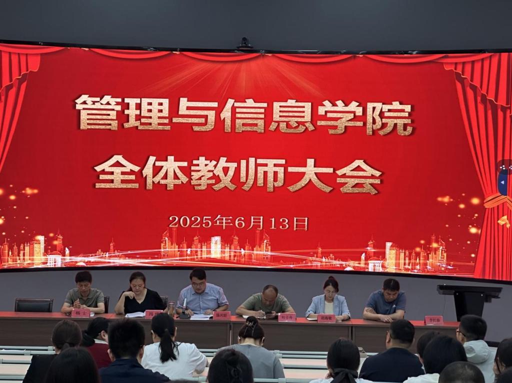 此次全体教师会议的召开,不仅明确了学院近期工作重点,更为学院未来发展指明了方向。管理与信息学院全体教师将以此次会议为契机,牢记育人使命,践行责任担当,携手共创学院高质量发展新局面。(图/文:刘慧雪,初审:张慧,复审:胡海敏,终审:陈兴旺)