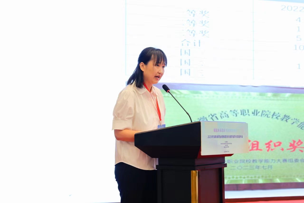 作为2024年省教学能力大赛最佳组织奖单位,滁州城市职业学院被特邀在安徽省职业院校信息化教学指导专家组年会交流发言。学校始终将教学能力大赛作为深化“三教改革”的关键抓手,近三年参加安徽省高等职业院校教学能力大赛累计获奖33项,其中一等奖13项、二等奖12项、三等奖8项,学校连续两年荣获大赛最佳组织奖。并在2022、2023年全国职业院校技能大赛教学能力比赛中获二等奖、三等奖各一项。
