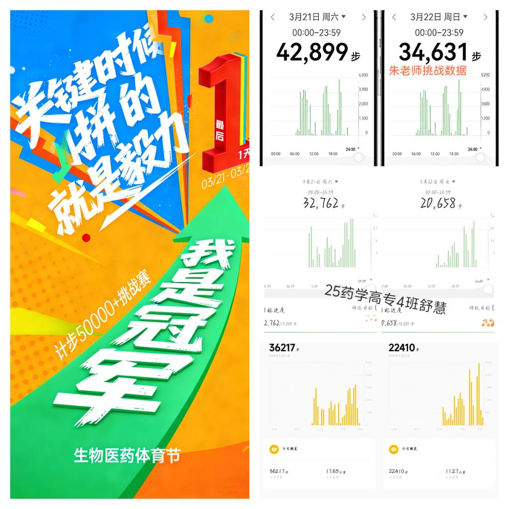 春光明媚,步履不停。3月21日至22日,学院组织发起“我是冠军”计步50000+挑战活动,吸引师生走出室内、拥抱自然。这是学院践行正确政绩观的生动实践——我们所追求的政绩,不在报表的数字里,而在师生“身上有汗、眼中有光、脚下有力”的真实状态中。