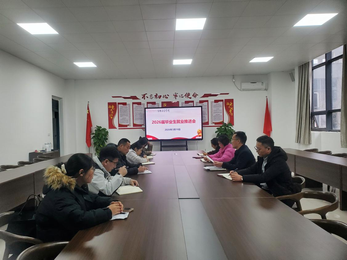 为深入贯彻落实全国高校毕业生等青年就业创业工作视频会议精神,扎实推进我院2026届毕业生就业工作,3月19日下午,学院召开毕业生就业工作推进会。党政领导班子、团总支书记、学管秘书及全体毕业班辅导员参加会议。