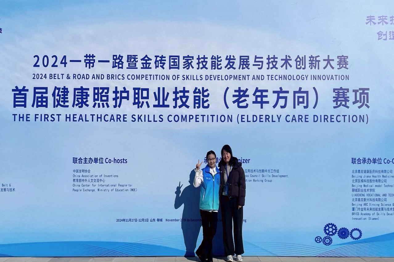 11月28日至12月1日,2024年一带一路暨金砖国家技能发展与技术创新大赛首届健康照护职业技能(老年方向)赛项在山东聊城职业技术学院举行,我院老年保健与管理专业22保健高专1班陈慕荏同学在选拔赛中荣获学生组一等奖,决赛中荣获学生组三等奖。金砖国家技能发展与技术创新大赛(以下简称“金砖大赛”)是2017年金砖国家最高领导人会晤筹备委员会认可、经中华人民共和国外交部备案、金砖国家工商理事会批准的国际大赛。自2017年...