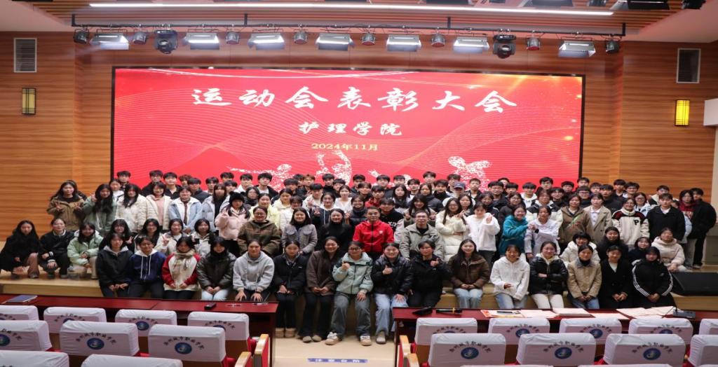 为了表彰在校第十四届田径运动会各类体育竞赛中取得优异成绩的运动员们,同时激励广大师生积极参与体育锻炼,弘扬体育精神。11月28日,护理学院在校第二报告厅举办了优秀运动员表彰大会,护理学院党总支书记蔡季秋、辅导员、优秀运动员代表以及广大学生参加了此次大会。会议由蔡季秋主持。护理学院在本届运动会中表现卓越,以团体总分第一、女子团体总分第一、男子团体总分第三的优异成绩。成功卫冕实现八连冠!活动在活力四射的...