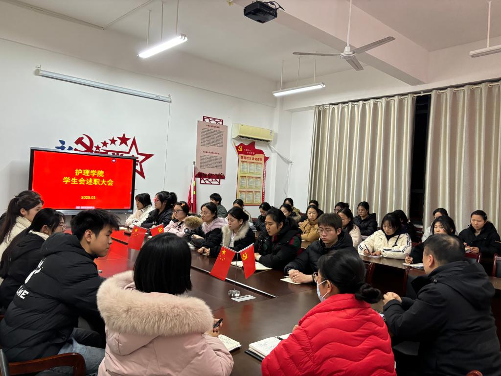 为全面回顾过去一年学生会的工作情况,明确未来的工作方向和重点,全力推进我院学生会工作高质量发展,为学院的发展和学生的成长提供更有力的支持。1月9日,护理学院在党员活动室举办学生会述职大会,护理学院党总支书记蔡季秋、副书记卢齐伟、团总支书记王艳、辅导员、学生会全体成员参加本次大会。学生会主席团及各部门负责人依次登台,通过PPT展示和汇报的方式,全面总结了2024年的工作成果与经验教训。他们围绕学生服务、活...