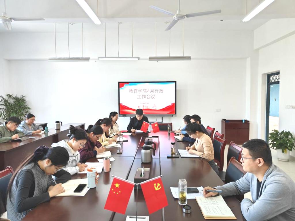 为确保教学与行政工作的高效推进,4月14日,教育学院在恩镇楼2202会议室召开4月教学与行政工作例会。学院全体行政人员及专职辅导员参加,会议由院长徐立娟主持。会上,副院长袁远首先带领全体参会人员学习并解读师德师风建设相关内容,提升个人职业德行素养,坚持以德育人的良好风范。随后,副院长刘明辉、袁远,党总支副书记陈立超,早期教育系主任徐校会,小学教育系系主任郎娟娟、副主任高梅媛,学前教育系主任王李艳、副主...