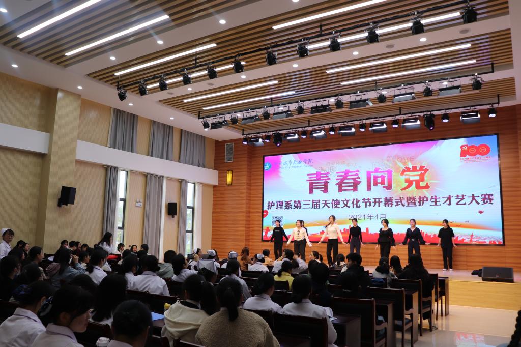 青春向党,使命在肩。为庆祝中国共产党建党100周年,充分展示当代大学生的爱党爱国爱社会主义的深厚情怀,4月14日下午,护理系在学院第二报告厅举办“青春向党”第三届天使文化节开幕式暨护生才艺大赛。通过初赛、复赛的筛选,共有17个节目进入决赛。本次护生才艺大赛节目形式多样,内容丰富,有舞蹈类、器乐类、声乐类、语言类。同学们精心准备,无论是慷慨激昂的朗诵,触人心弦的歌曲,妙趣横生的相声,别出心裁的花鼓表演,...