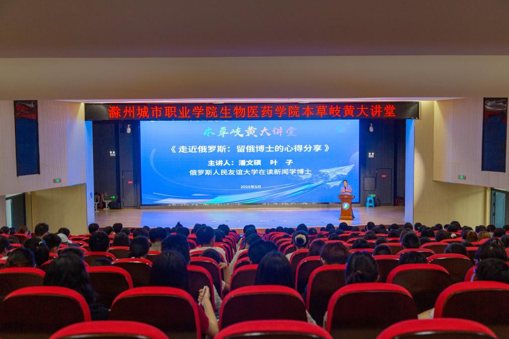 9月17日下午,生物医药学院品牌活动“本草岐黄大讲堂”顺利举办。本次讲堂邀请留俄在读新闻学博士潘文硕、叶子,以“走近俄罗斯:留俄博士的心得分享”为主题,围绕俄语学习及经历展开交流。学院党总支书记朱启来主持分享会。分享环节中,潘文硕、叶子聚焦俄语学习技巧,通过丰富的图片、实例和亲身经历,讲解俄语在实践中的运用技巧,并与现场同学进行互动交流,为中外合作办学专业学生的语言学习与专业发展提供了实用建议。“...