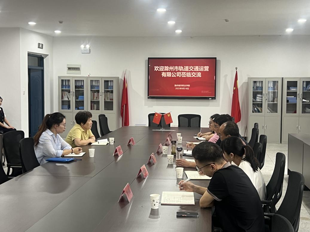 9月18日,滁州市轨道交通运营有限公司人力资源部团队来我院开展校企合作交流洽谈,旨在搭建沟通平台、探索合作路径。公司人力资源部负责人刘述芳、张梦雪,管理学院党总支书记陈兴旺、院长叶士舟、副院长胡海敏及交通运输系系主任邢桂先等共同参与交流。交流会上,陈兴旺书记对企业一行的到来表示欢迎,并介绍了我院交通运营管理专业的发展概况。该专业在校生规模稳定,坚持依托行业需求推进专业建设,成效显著。学院高度重视学...