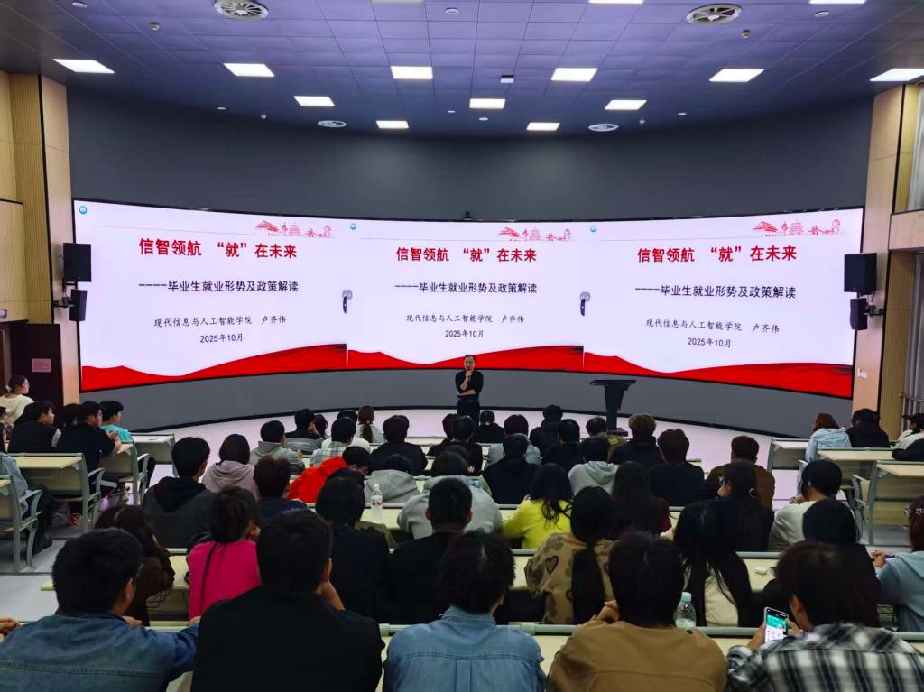 为深入贯彻落实党中央关于高校毕业生就业工作的决策部署,充分发挥党建引领作用,帮助学院毕业生精准把握就业形势、明晰就业政策、提升就业竞争力,10月13日,现代信息与人工智能学院党总支书记卢齐伟以“信智领航‘就’在未来” 为主题,给2026届学生开展毕业形势分析与政策解读会。就业是最大的民生,学院党政始终将毕业生就业工作作为“党建+民生”的重要抓手,以高质量党建引领高质量就业。结合当前信息与人工智能行业发展...