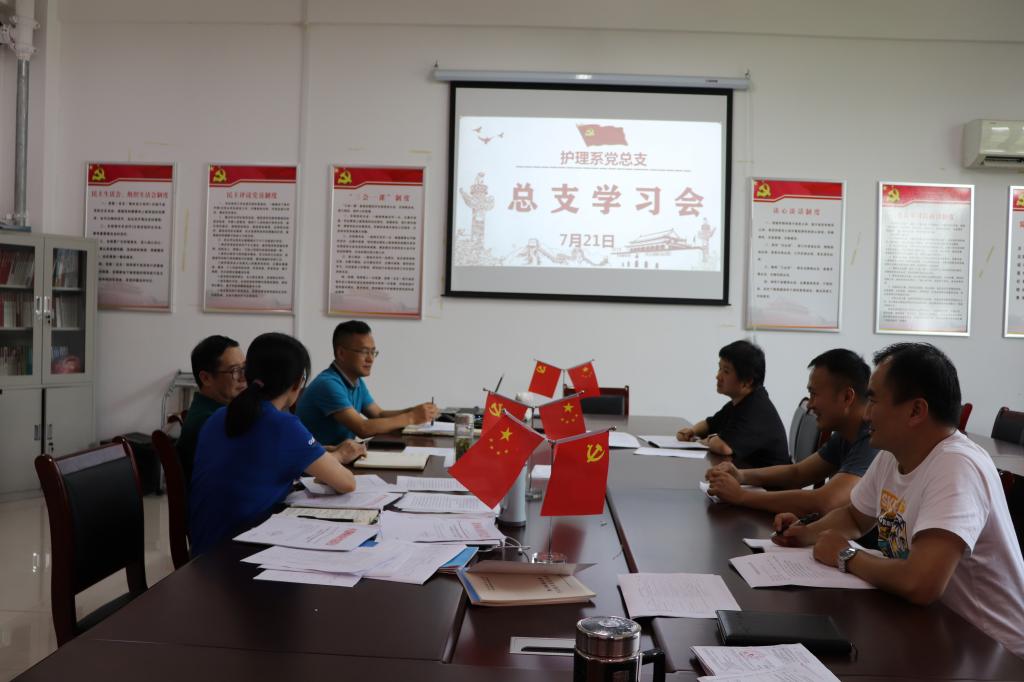 7月9日上午,护理系在B3-PBL室举行全体全体教职工政治学习暨师德专题学习会,深入学习贯彻习近平总书记在庆祝中国共产党成立100周年大会上的重要讲话精神。全体教职工参加学习活动,系党总支书记蔡季秋主持会议。会上,利用学习强国平台,全体教职工再次收听收看了习近平总书记在庆祝中国共产党成立100周年大会上的重要讲话,并收看了专题片微视频《从红船到巨轮》。短短五分多钟的视频,却让与会同志为之动容。从1921年至今,1...