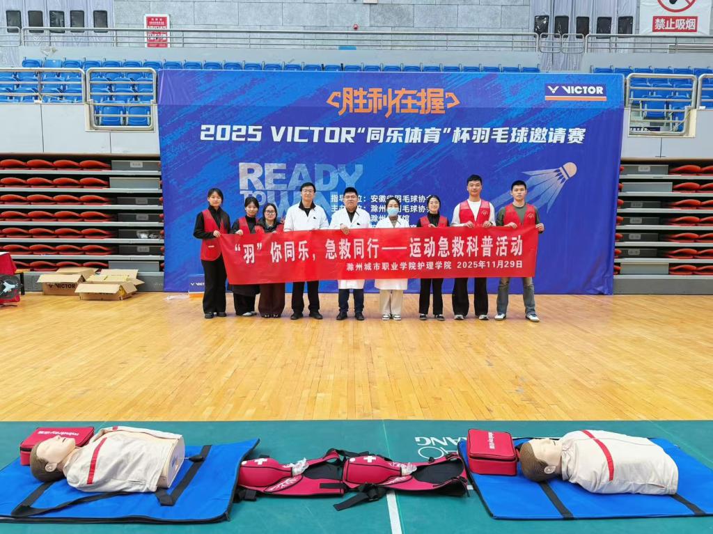 11月29日,由安徽省羽毛球协会指导、滁州市羽毛球协会主办的2025年VICTOR胜利在握“同乐体育”杯羽毛球邀请赛在滁州体育馆成功举办。 滁州城市职业学院护理学院应滁州市羽毛球协会邀请, 由副院长李勋华带队,组织师生 全程参与赛事保障工作。 师生 团队凭借专业的医疗保障和细致的志愿者服务,为赛事的顺利、安全进行提供了坚实后盾,赢得了主办方、运动员及观众的一致好评。在持续一天的激烈比赛中,护理学院师生团队始终坚守...