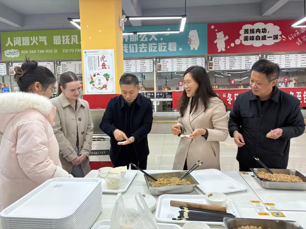 为弘扬中华优秀传统文化,丰富师生校园文化生活,12月19日,在冬至佳节来临之际,我院在食堂举办包饺子活动。校党委委员、副校长孙静,校党委委员、学生处处长杨如江,总务处处长蒋峰,学院党总支书记朱启来,院长徐旭,党总支副书记曹慧敏,俄语教师阿丽娜以及学院部分师生代表参加活动。活动前期,学院进行了周密准备。从场地协调、食材采购到器具准备、流程设计,均做了细致安排,确保活动过程井然有序、氛围轻松愉悦。活动...