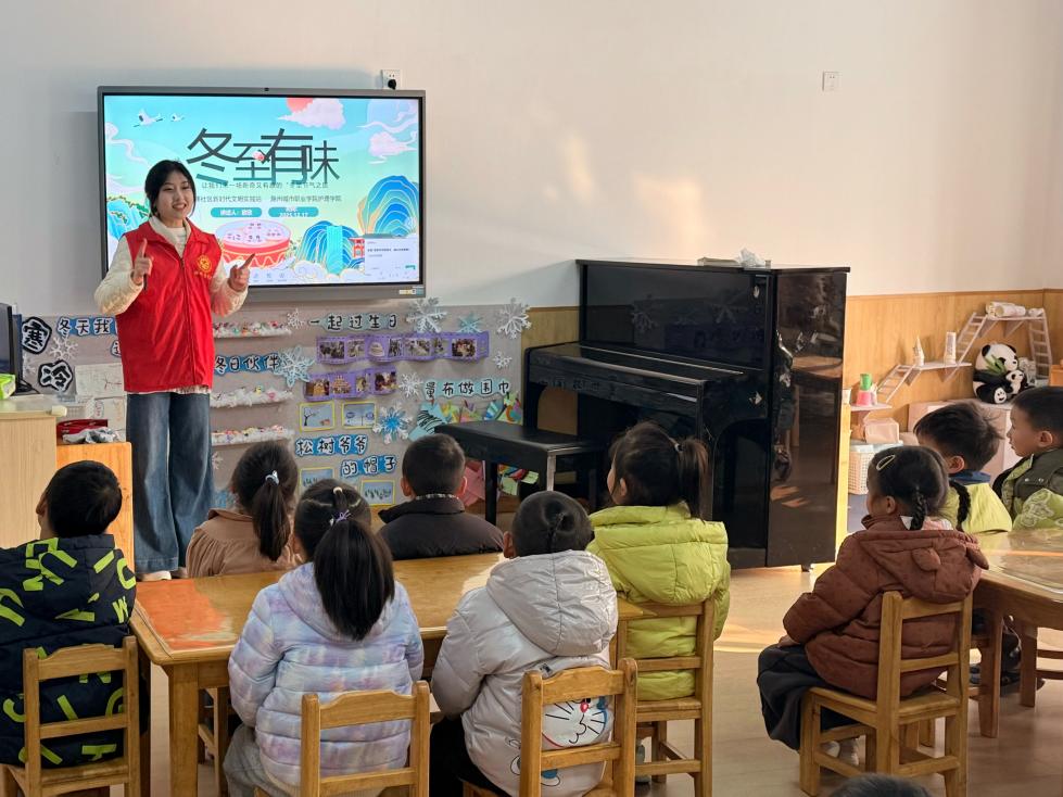 冬至临深冬,温情暖校园。12月17日,护理学院学生党支部的党员志愿者们走进滁州市梅铺社区艺境山城幼儿园,以“冬至有味 趣味相伴”为主题开展系列文化活动,将节气知识与传统习俗融入趣味互动,让孩子们在欢声笑语中感受中华传统文化的魅力,以党建力量为幼儿成长注入温暖动能。活动现场,党员志愿者们化身“节气导师”,通过生动有趣的绘本故事、动画短片,向孩子们讲解冬至的由来与自然奥秘——“这一天太阳公公跑得最远,所...