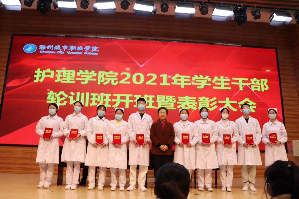 12月15日下午,护理学院2021年学生干部轮训班开班暨表彰大会在第二报告厅举行。学校党委书记张志华出席会议并讲话,护理学院院长章正福、党总支副书记朱启来及全体辅导员、班主任及各班主要学生干部近200人参加会议。学院党总支书记蔡季秋主持会议。会上,利用课件展示了护理学院部分优秀毕业生风采。1986届助产7班优秀毕业生、滁州市第一人民医院党委书记刘家珍、 1984届护士11班优秀毕业生、滁州市第一人民医院党委委员、市护...