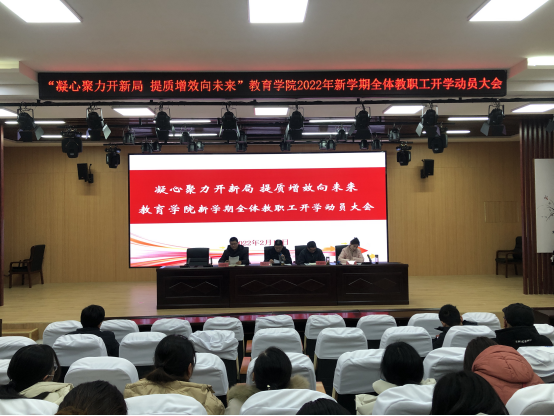 一元复始,万象更新。2月17日,教育学院在报告厅召开了以“凝心聚力开新局 提质增效向未来”为主题的新学期全体教职工动员会议暨2月思想政治理论学习会。教育学院党政班子成员及全体教职工参加会议,会议由学院党总支副书记徐立娟主持。会上,首先由高国柱院长作了2021年工作总结报告暨2022年工作展望,带领大家全面回顾了教育学院2021年取得的成就与不足,并从加强自身建设、强化人才培养质量等方面对2022年工作提出要求。他强...