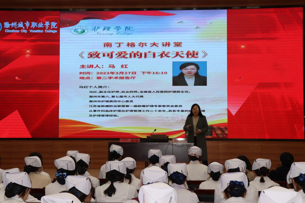 为深入学习贯彻党的二十大精神,坚持人民至上、生命至上的根本要求,培养护生责任意识,3月27日下午,护理学院南丁格尔大讲堂在第二学术报告厅开讲,诚邀全椒县人民医院护理部主任马红做了主题为《致敬可爱的白衣天使》专题讲座。护理学院师生代表近150人参加了讲座。马红主任结合护生即将走上实习岗位,立足专业角度,从医院概况、科室设置、护理工作开展情况、疫情防控工作四个方面,给护生做了一次生动的岗前培训,让同学们...