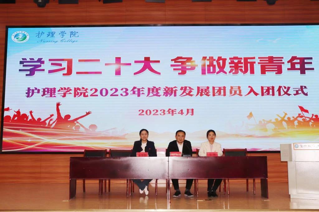 为深入学习贯彻落实党的二十大精神,大力弘扬“爱国 进步 民主 科学”的“五四”精神,厚植青年学生爱党、爱国情怀,切实增强共青团员的责任感、使命感、荣誉感,“五四”青年节前夕,护理学院2023年新团员入团宣誓仪式在第二学术报告厅顺利举行,出席仪式的有学院党总支副书记卢齐伟、团总支书记王艳、学管张莹莹老师、各班班主任辅导员和新老团员代表。王艳主持了宣誓仪式。仪式在嘹亮的国歌声中拉开帷幕。王艳宣读了新入团学...