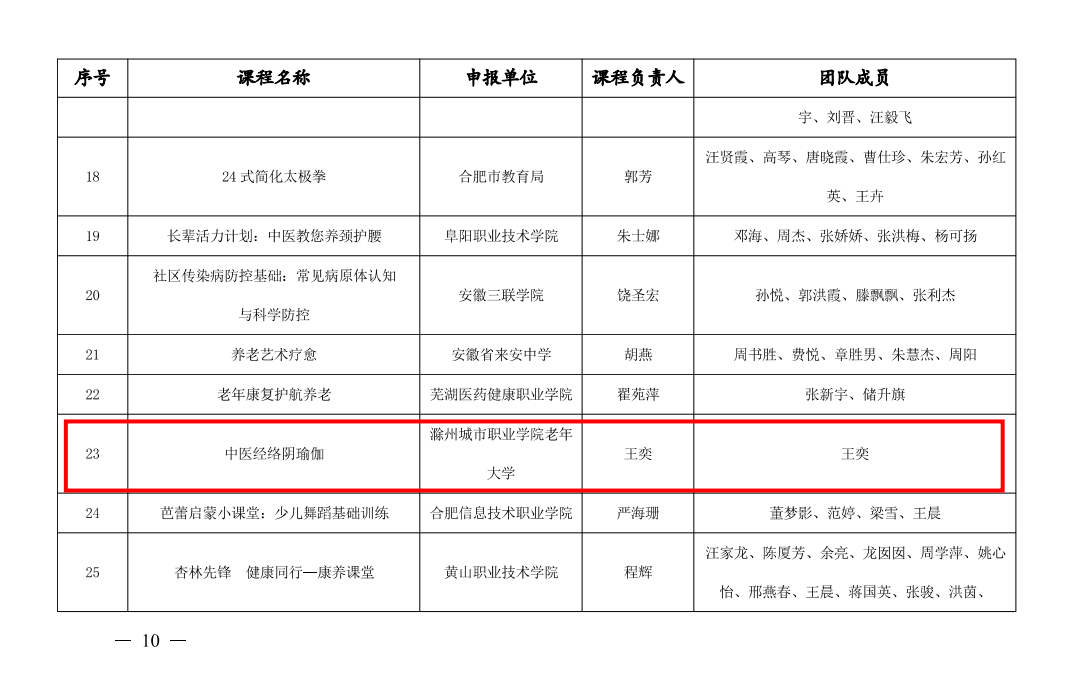 校老年大学瑜伽课程入选安徽省社区教育优秀课程资源