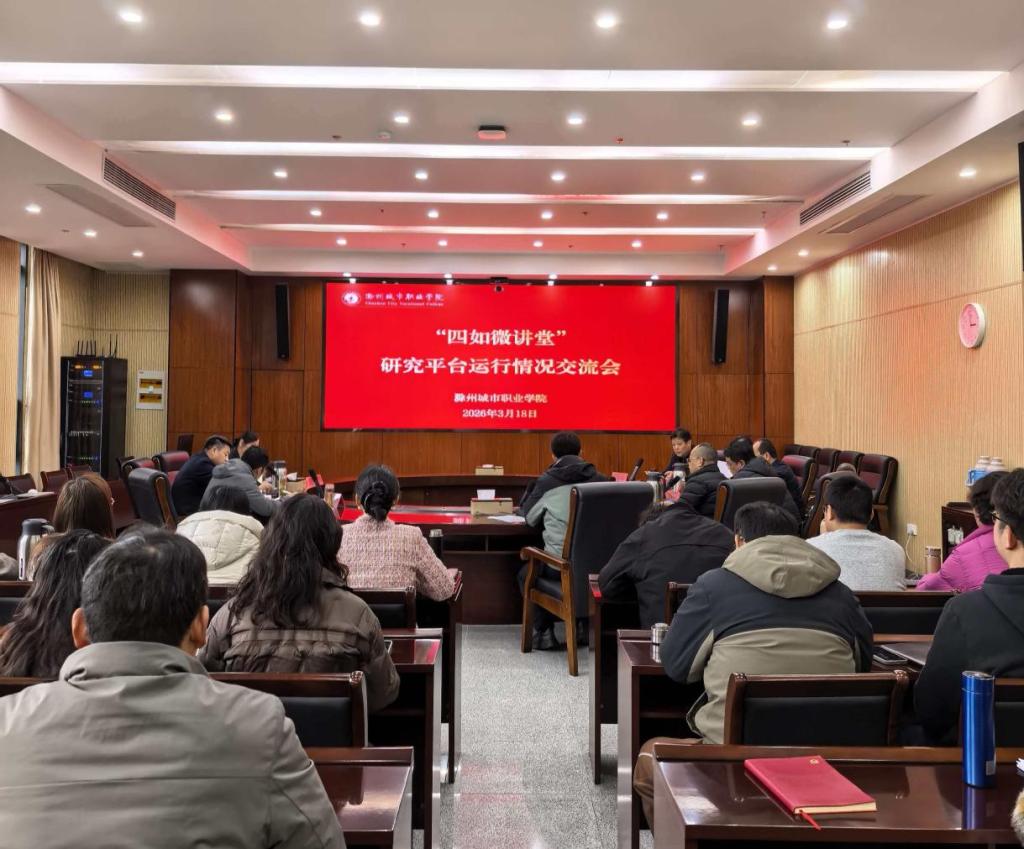 为树立和践行正确政绩观学习教育,着力解决研究平台运行难题,落实为教师办实事,3月18日下午,学校召开2026年度“四如微讲堂”第二期“研究平台运行情况交流会”,校党委副书记、校长汪上出席会议并讲话,相关研究平台负责人及团队骨干、相关部门与教学院部负责人参会。会议由校党委委员、组织人事处处长杨莹主持。会上,杨莹介绍了学校研究平台基本情况。滁州健康发展研究中心等四个平台负责人依次汇报工作进度与成效,深入剖...