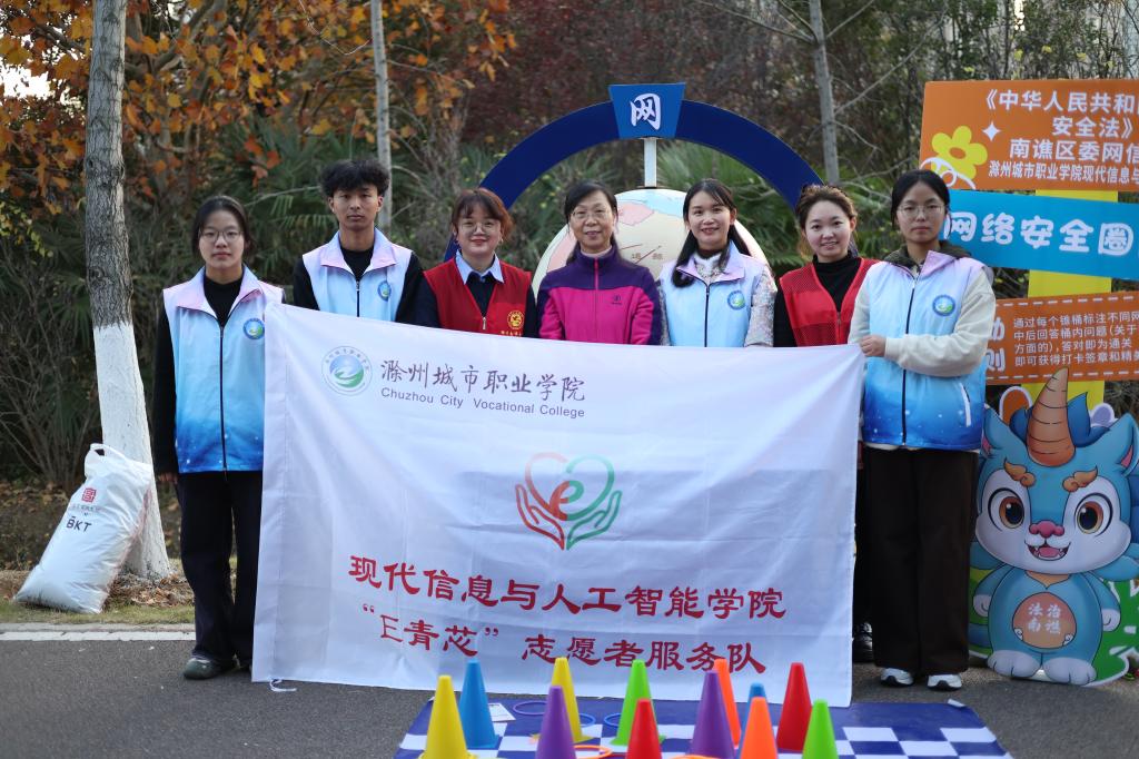 11月30日,滁州市南谯区第八个“宪法宣传周”集中宣传活动在滁州市宪法公园举行。现代信息与人工智能学院党总支副书记张少敏带队,团总支书记王校怡共同参与,组织“E青芯”志愿者服务队与南谯区委网信办联合开展了一场寓教于乐、贴近群众的普法宣传活动。活动现场,志愿者们结合专业知识,围绕《网络安全法》《个人信息保护法》等法律法规,设置了形式多样的互动问答与情景模拟环节。“陌生链接能不能点”“个人身份证号能随便...