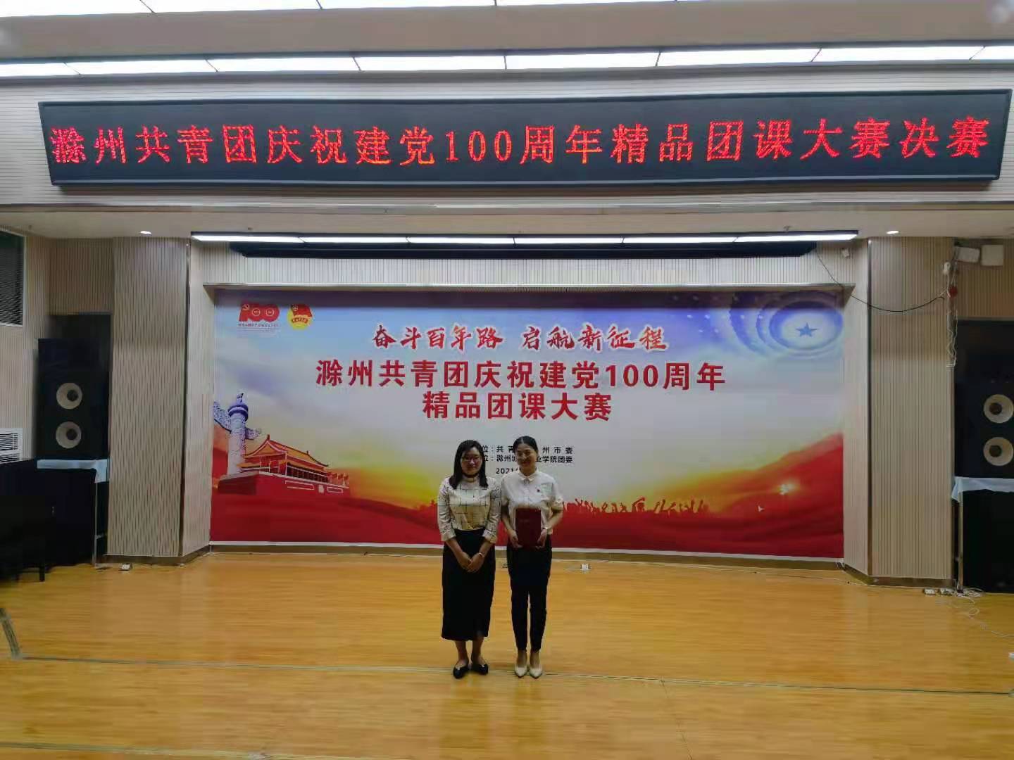 6月1日下午,由团滁州市委主办、院团委承办的“滁州共青团庆祝建党100周年精品团课大赛”决赛在我院图文中心报告厅圆满落幕。经过激烈角逐,来自我院护理系的王艳老师发挥出色,从25个精品团课作品中脱颖而出,荣获本次大赛一等奖!团滁州市委书记孙静,院党委委员、副院长施向阳,团滁州市委副书记戴莺,本次大赛各位评委老师和参赛选手,以及来自我院近150名师生共同观看了本次比赛。本次精品团课大赛,是滁州市共青团全面落...