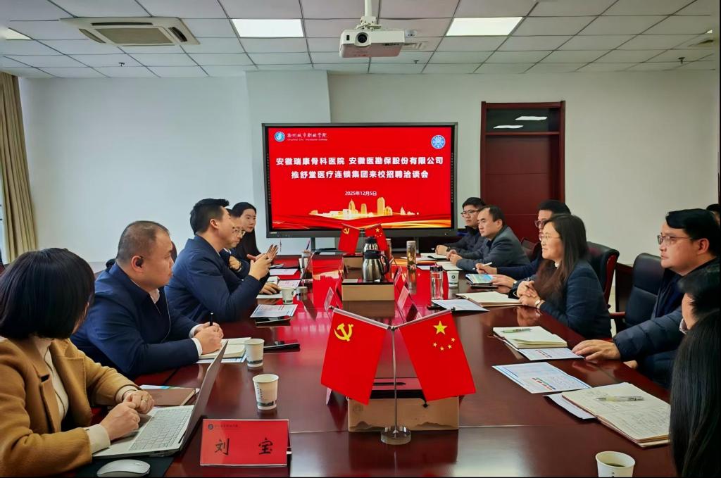 为深化产教融合、校企合作,精准对接市场需求,拓宽毕业生就业渠道。12月5日,安徽瑞康骨科医院、安徽医勘保股份有限公司、推舒堂医疗连锁集团等企业负责人一行莅临滁州城市职业学院,以校园招聘、学生实习、微专业共建等事宜开展深度洽谈。我校党委委员、副校长孙静主持座谈会,招生就业处、教务处及有关二级学院相关负责人参会。会上,孙静对企业的到来表示热烈欢迎,并详细介绍了学校的专业设置、人才培养模式、毕业生规模及...